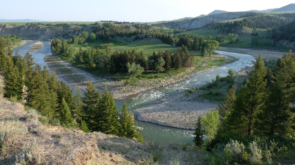 From where I sit, the water comes into sight up by the big midstream rock, swamper of canoes. It tumbles out of a long, boulder strewn riffle, piles up in a big eddy near a sandstone cliff, and then sorts itself out before coursing down a long run to where I watch. It’s constantly arriving, bringing stories from farther upstream where some of its waters rested in beaver ponds or spilled off mountain walls while other tributary streams carved slot-like shadows into conglomerate cliffs or wide, curving sinuousities through green fen meadows. It arrives confident in its knowledge of where it’s been and busy with purpose, carrying those gathered waters, stories, and spirits down from the mountains where, even now, its waters are still in the process of being born.