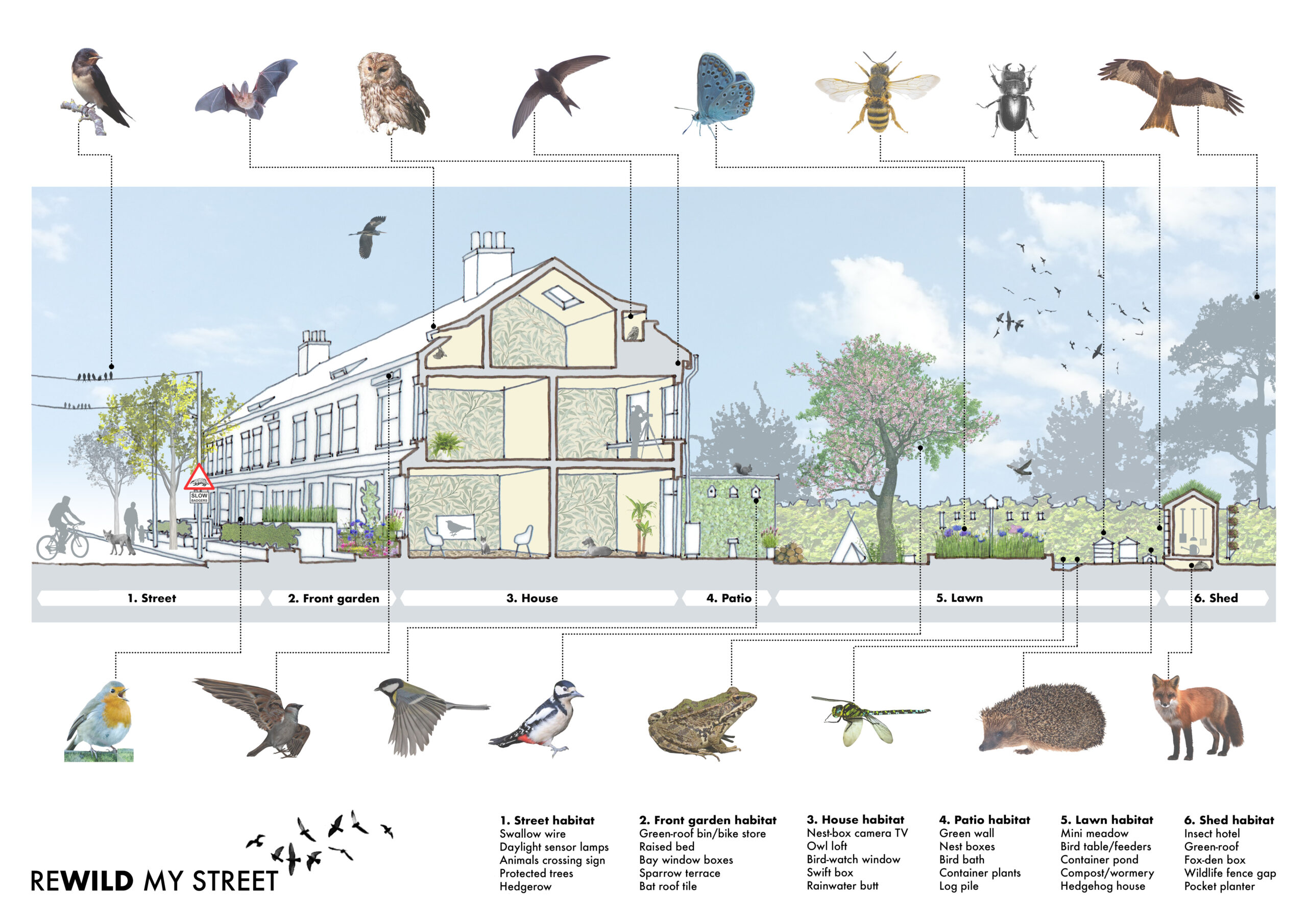 Graphic by Siân and Jon Moxon/Rewild My Street (with altered photos courtesy of Charles J Sharp, Pau.artigas, Super.lukas, Didier Descouens, Ninjatacoshell, George Hodan, Piotr Siedlecki, Peter Mulligan, Potapov Alexander/Shutterstock).